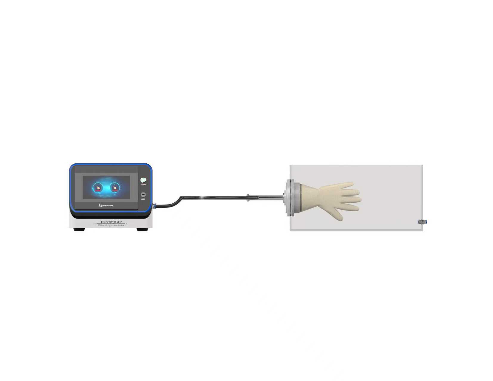 设定充气参数后启动,手套内的充气压力应保持2min,波动不超过充气压力的±10%,在观察可能出现的气泡时,可延长一定测试时间,但不应超过30s。