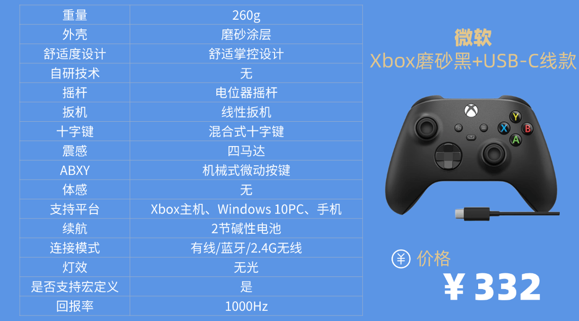 品牌⑷微 软X box磨砂黑+USB-C线款游戏手柄