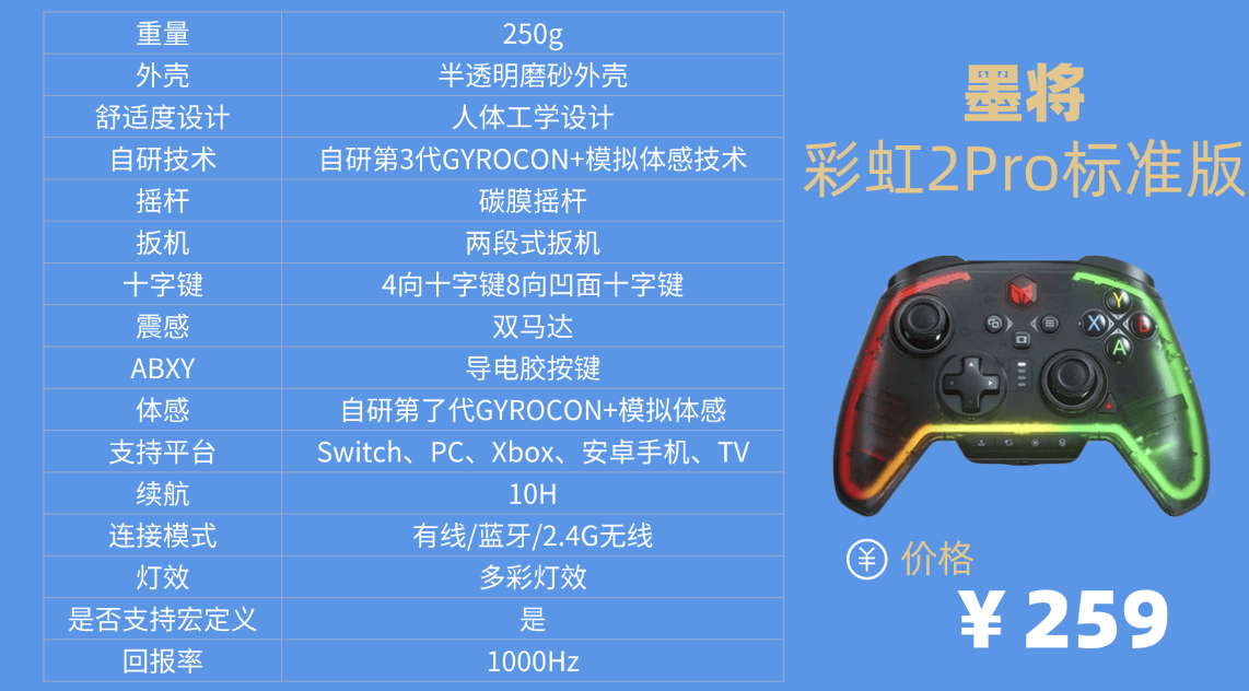 品牌⑹墨 将彩 虹2Pro标准版游戏手柄