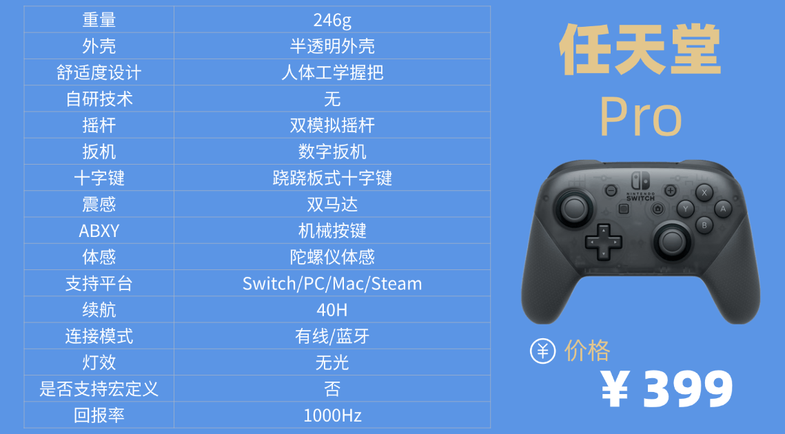 作为官方手柄,它在Switch平台适配满分,回连稳定,延迟表现优秀;在PC/Mac端也能通过蓝牙轻松连接,Steam识别度高,无额外驱动负担。续航单次可以使用40小时,正常使用可以应付长时间游玩。