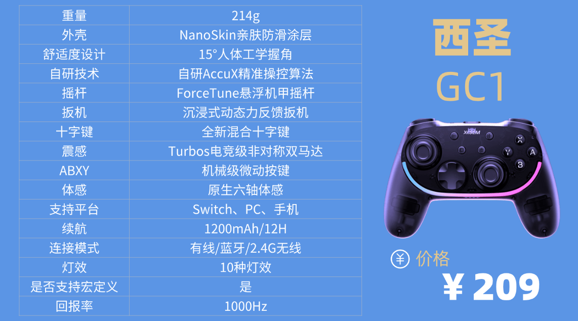 300元以内的游戏手柄选哪款?我更愿意直接推荐西圣GC1,来自国内专注游戏交互技术的实力品牌。西圣在无线传输与精密按键结构上深耕多年,坚持“平价也能拥有专业级操控”这一核心理念。它的手柄在响应延迟、摇杆精度与多平台适配上表现稳健,实际体验甚至赶上不少更高价位的竞品,是百元档里真正能打的高性能选择。