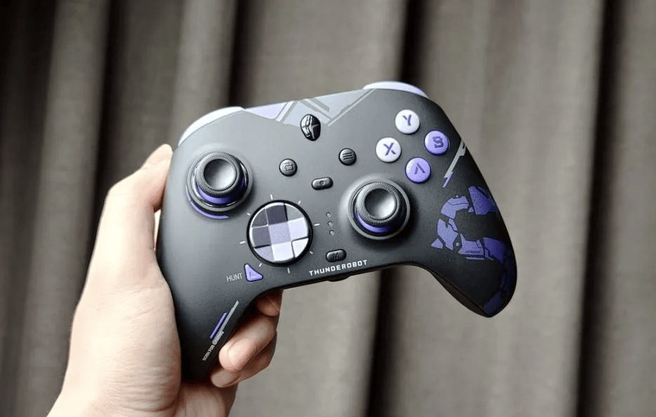 手柄整体做了细磨砂涂层,握上手那种“干爽但不打滑”的质感比较符合长时间游戏需求,重量和平衡感也控制得不错。新版十字键采用浮雕式结构,搓方向更干脆,只是方向边角的回弹力度偏硬,玩格斗类游戏时手感需要一点适应。摇杆顺滑度稳定,死区调得偏小,FPS 操作细调轻松;扳机具备细腻的压力分段,赛车类游戏能很明显感知油门变化。四马达震动能模拟路面与武器反馈,但强档稍微偏“锐”,不喜欢强烈震感的玩家可能需要降低档位。