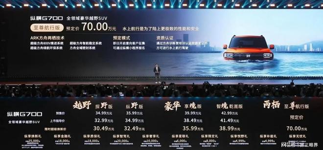 10月16日,奇瑞捷途首款豪华越野SUV-捷途纵横G700成功横渡长江,引发全网热议,为新车上市打开新局面。尽管购买同款车型的门槛不低(预订价70万元),还要培训和考证,但凭借这一出圈营销,以及30.49万元的入门价格,还是吸引了无数目光。上市仅一天,便获得超1.57万台的大定订单。