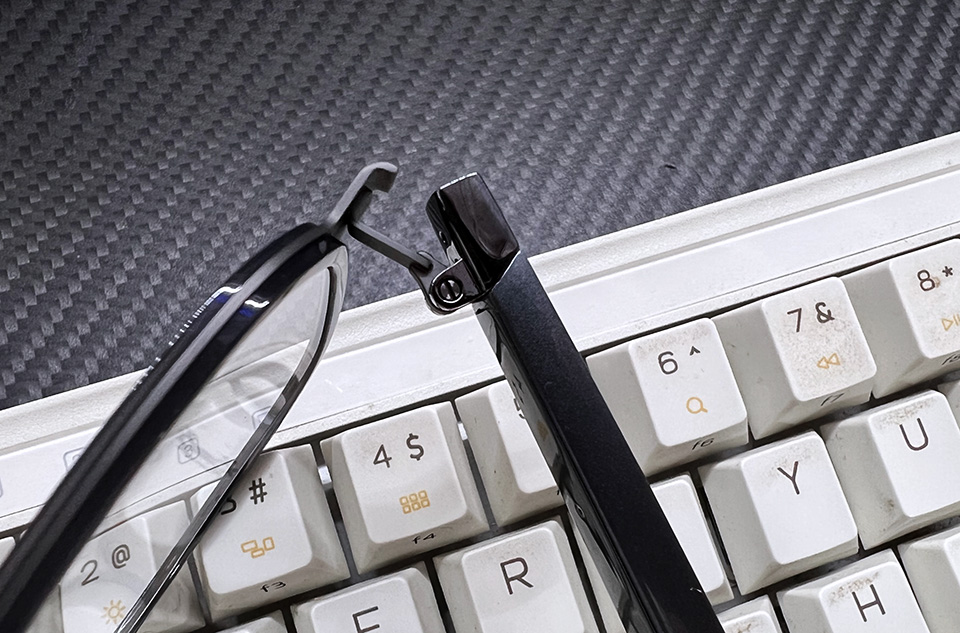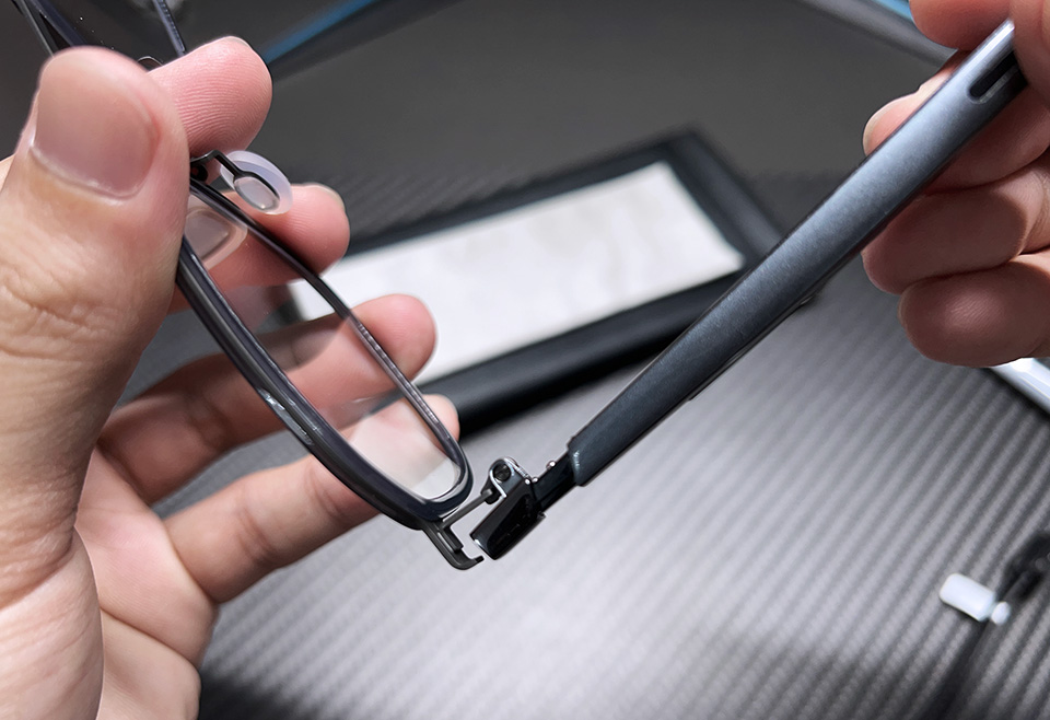镜腿和镜框的结合也是非常的方便,只需要将镜腿末端轻轻一怼就行了,卸下的的时候也是轻拔一下即,也是非常的方便。