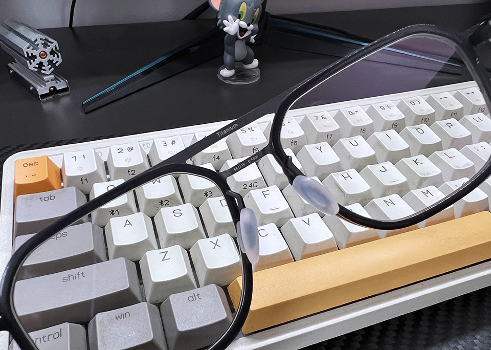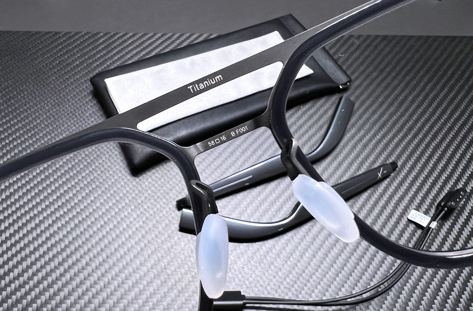 整体镜框的话采用的是纯钛材质,整体轻的同时(只有8g)又不失韧感,鼻托设计也又自己的特色 ,能让整个镜框稳稳的、舒适的架在鼻梁上。