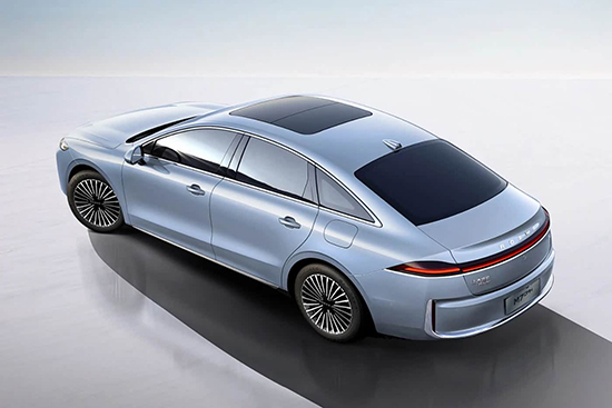 侧面采用简约流畅的线条勾勒,溜背式车顶展现出优雅的轿跑风格,兼顾空气动力学与视觉动感。尾部配备贯穿式尾灯,采用立体悬浮式结构,内部由多层光导纤维构成,夜间辨识度极高。