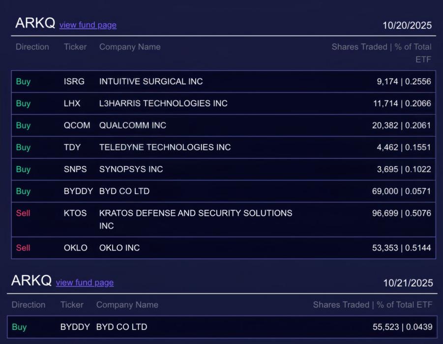 除国际投行外,以凯茜·伍德(女版巴菲特)旗下方舟投资为代表的长线资金,也在加速布局比亚迪。方舟投资在10月20日通过旗下ARKQ基金买入69000股比亚迪,10月21日再度增持55523股,这一连串的动作,充分表明了该资本对比亚迪前景的看好。