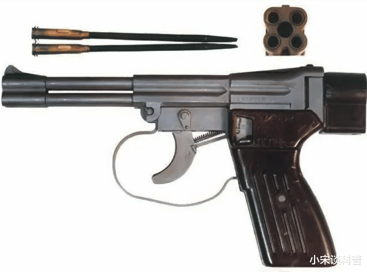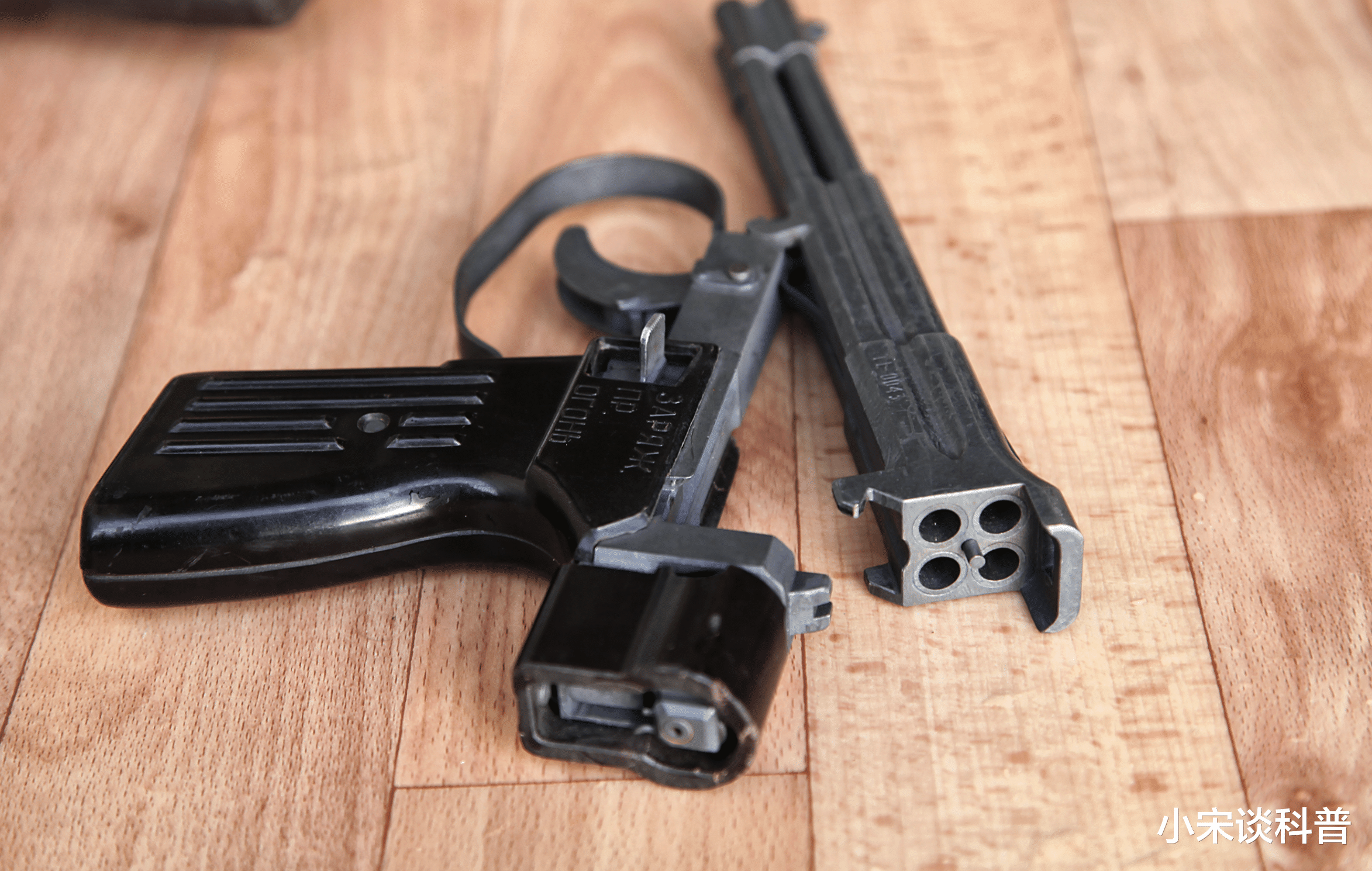 SPP-1手枪有4根枪管,每根枪管各自装1发子弹,弹匣位于枪管后部仅4发弹容量。