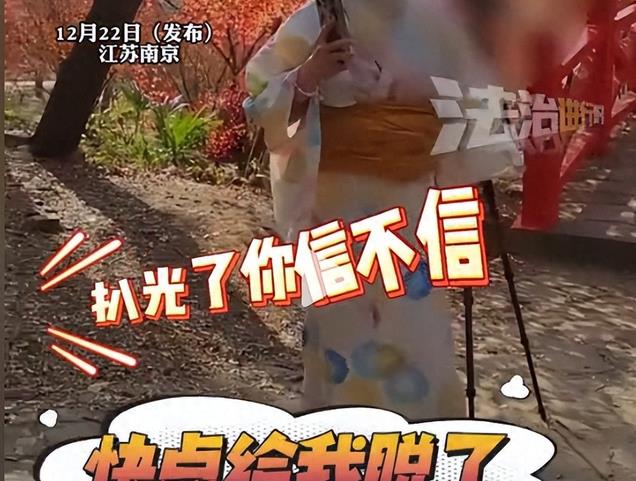 在两人争吵的过程中,可以听到旁边还有路人帮大妈一起说让女孩将身上的和服脱掉。