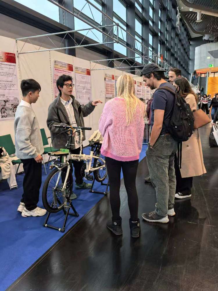 展会现场,评委团队对《非机动车动能回收装置》进行了严格考核:不仅全程聆听学生对发明原理、应用场景的讲解,还通过动手实操检验装置的受力稳定性,细致观察动能回收与电能转化的实时效果。最终,装置的 “创新性” 与 “实用性” 获得评委一致公认,成为展会焦点之一。