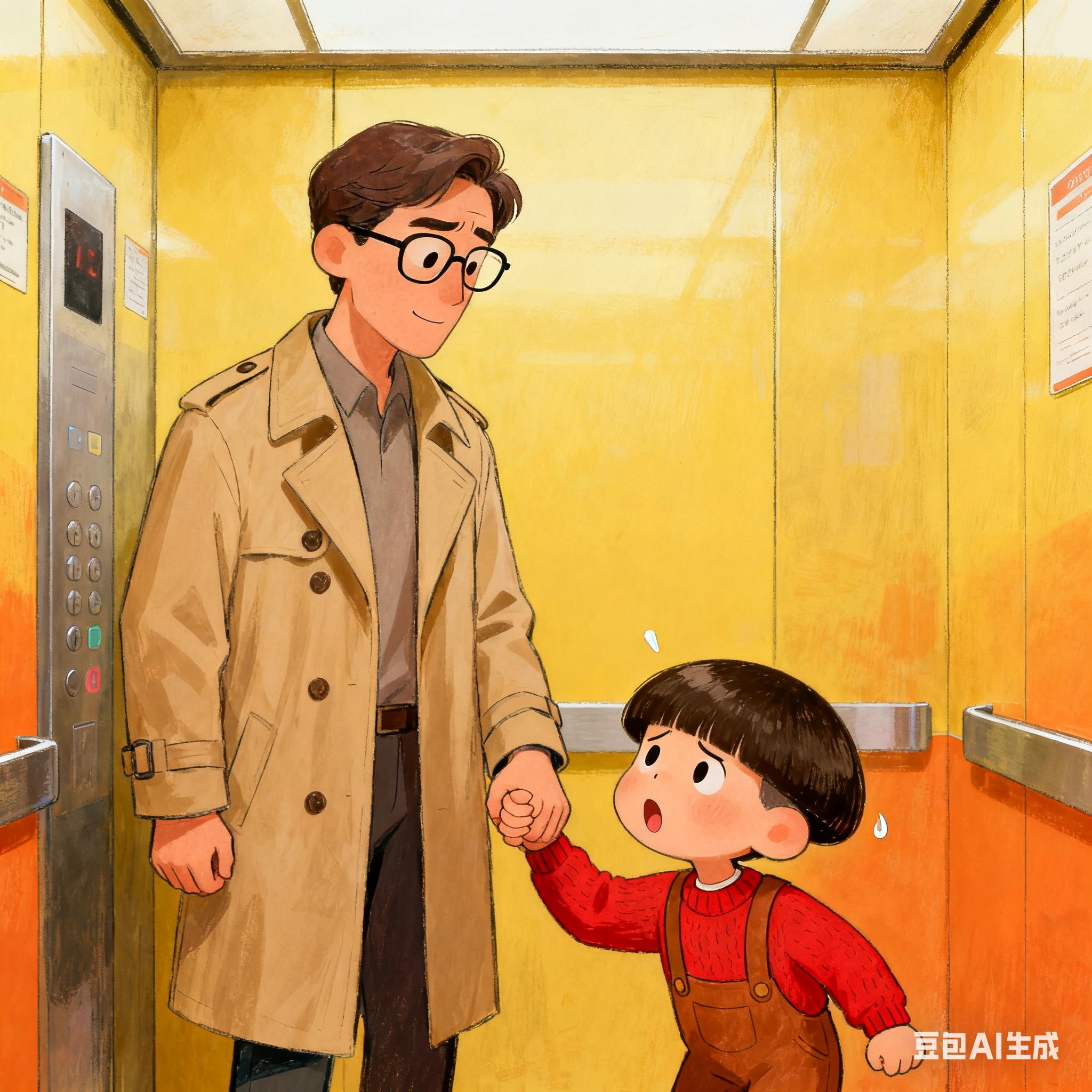 今早7点半的电梯里,挤满了赶时间的上班族,金属轿厢里弥漫着淡淡的早餐香气与匆忙的脚步声。角落里,一位父亲牵着约莫四岁的小男孩,孩子穿着蓝色幼儿园园服,小脸蛋肉乎乎的,攥着爸爸食指的小手时不时晃一晃。