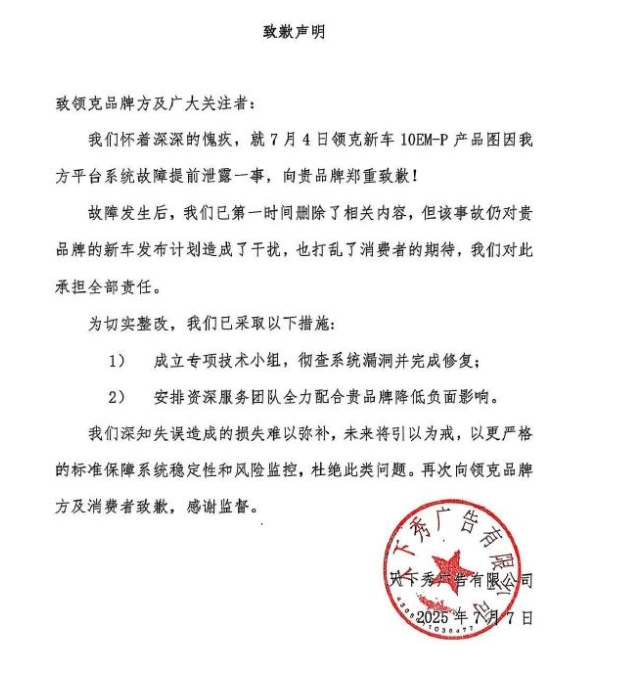 发布在即,领克10EM-P被莫名泄露,品牌方完全是躺枪受害者绝非炒作——高管立刻下令追责,知名博主陈震紧急辟谣自己清白(他还记得前次罚单呢)。好在天下秀广告公司火速公开致歉,这场闹剧终于以歉意收尾,大家热议之余更关注下次别搞乌龙!