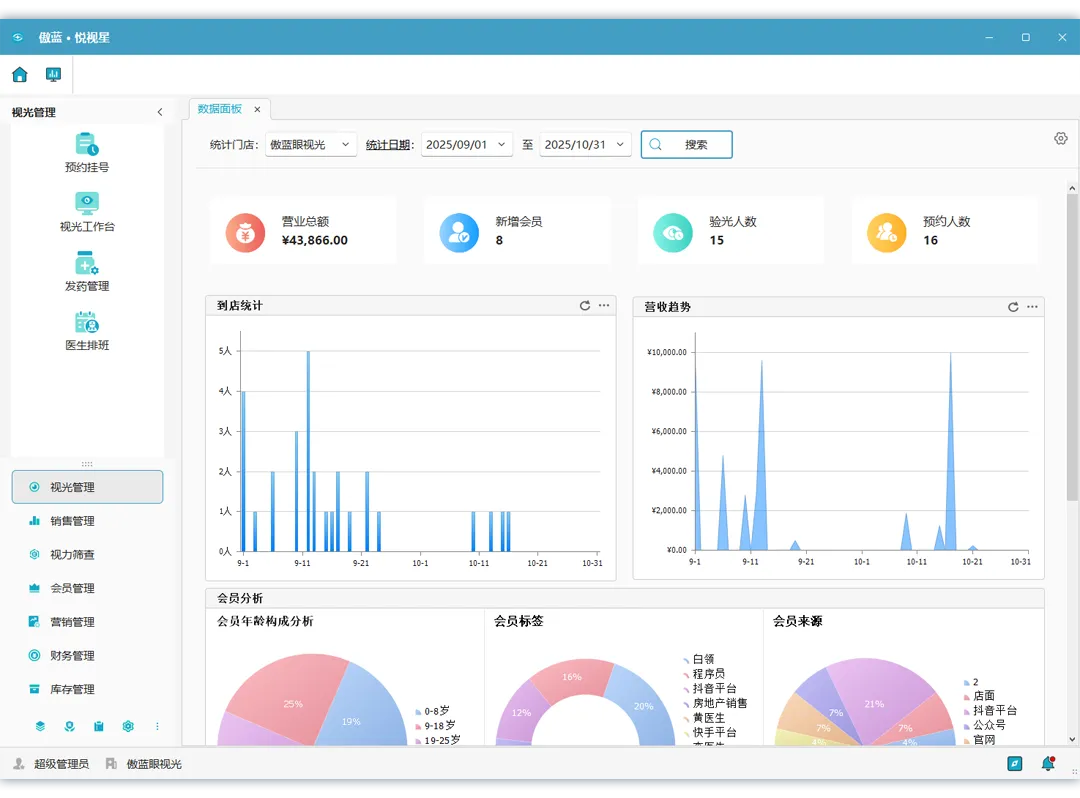 在眼镜行业数字化转型的浪潮中,傲蓝悦视星凭借16年行业深耕积累的技术优势,已成为众多连锁品牌、单体门店的共同选择。它不仅是一套软件,更是一套完整的经营方法论——用数字化工具重构人、货、场的关系,让眼镜店管理更高效、服务更专业、营销更精准。