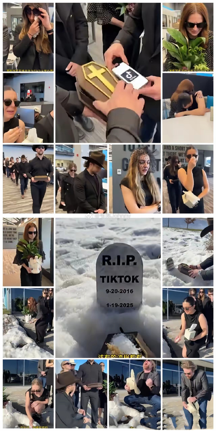 对此,美国网友为TikTok(抖音)举办“赛博葬礼”,致逝去的“数字遗产”。该有的流程都有,有模有样,哭得稀里哗啦!责备拜登 ,呼喊特朗普。