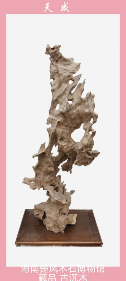 注:此作出自海南的母亲河南渡江,天然古沉木,未动一刀一剪。2015年曾参加第二届海南省艺术节根雕艺术作品展,荣获省政府颁发银奖。