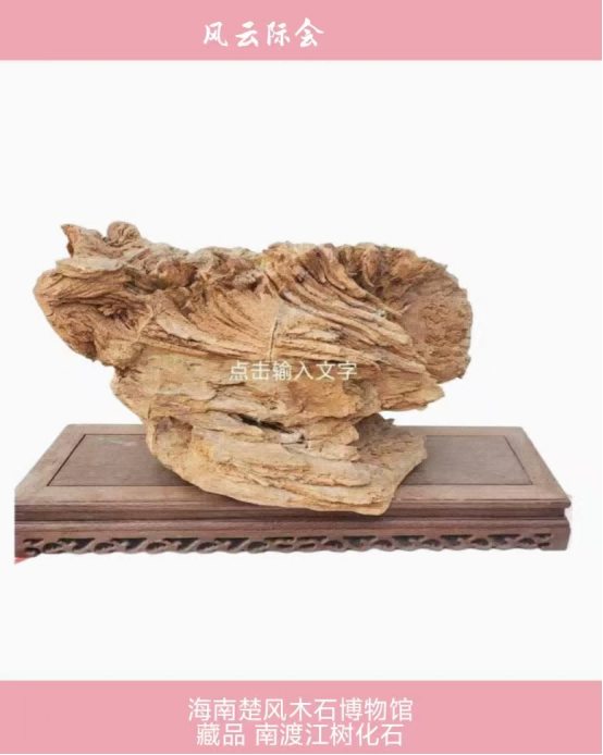 注:此石出自南渡江沙下20米,年愈亿年,长1.6米,厚0.8米,重约千斤。2020年曾应邀参加在国际会展中心举办的全球电动汽车展。