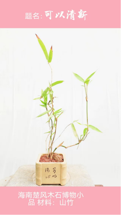 园右荒地掘一小竹,今天上盆。盆为宜兴紫砂,上镌“可以清心”四字,于是见盆起意,改一字,题名《可以清新》。