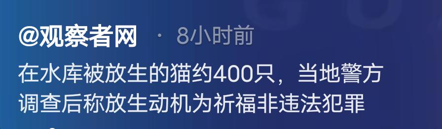 前几天广东清远,某水库上千只猫被放生的事件被传得沸沸扬扬。