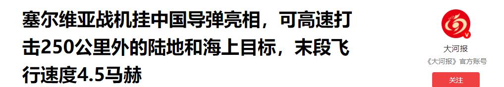参考资料:《塞尔维亚战机挂中国导弹亮相,可高速打击250公里外的陆地和海上目标,末段飞行速度4.5马赫》——大河报