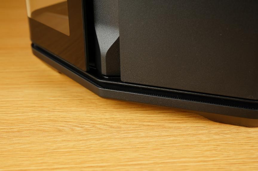 机箱底部的塑料底座周围有一圈的嵌入式ARGB灯带,亮机后能够通过漫反射展示灯效,非常的好看。