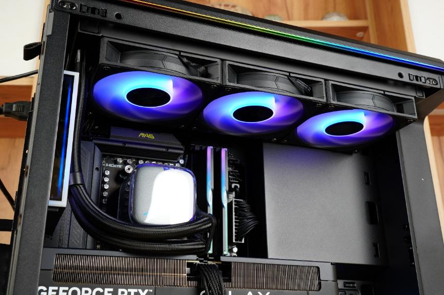 先马巨浪3机箱内部最大可以支持ATX主板的安装,同时可最新的背插式主板,目前各大主板厂已经陆续发布了多款背插式主板,因此机箱预留的背插式设计也算是可以派上用场了。先马巨浪3的CPU风冷散热器最高支持165mm,显卡最长可以支持到410mm,目前最新的RTX50系列显卡也可以完全放入。