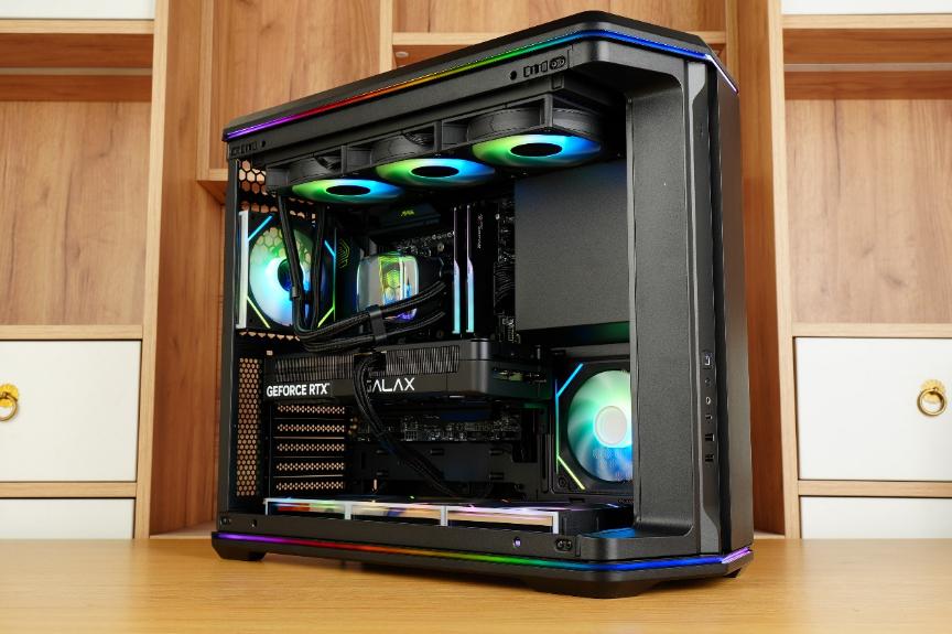 在“海景房”机箱扎堆追求极致侧透与夸张造型的当下,先马巨浪3却走出了一条差异化的外形之路——它以克制为基调,将张扬与沉稳巧妙平衡,让“海景房”不再是浮夸的代名词。一半面积的侧透玻璃搭配柔和弧度,褪去了过度通透的张扬感;正面精细分割条与晒纹彰显模具质感,顶部凌厉装甲线条打破沉闷;底部与顶部嵌入式ARGB灯带通过漫反射洒下柔和光影,卡扣式快拆面板则在细节处暗藏巧思。不同于常规海景房的臃肿,让机身厚度回归常规ATX机箱的紧凑质感,每一处外形设计都兼顾了颜值、实用性与独特性,刚亮相便让人对先马的新设计语言刮目相看。