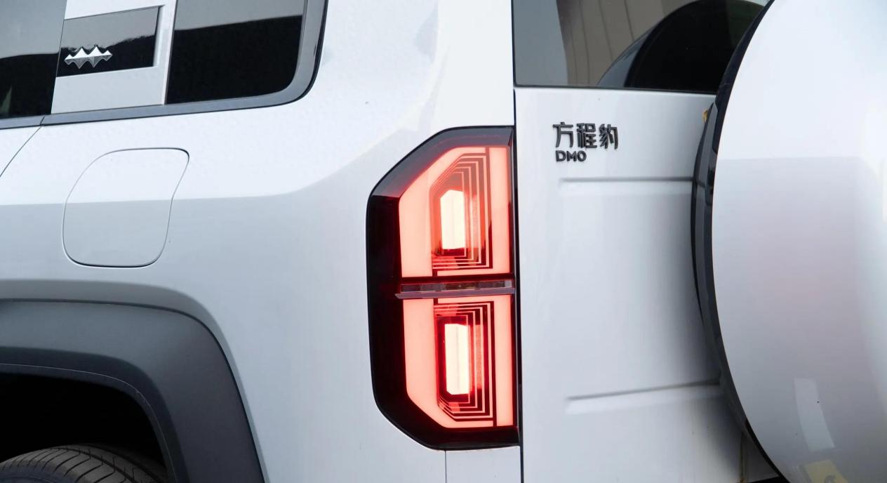 再来看外观设计。豹5采用了方盒子造型,搭配矩阵式进气格栅和环绕式灯带,整体风格硬朗大气,又不失科技感。车身侧面线条简洁流畅,尾部则采用了外挂式备胎和侧开门设计,进一步强化了其硬派越野车的身份。这种设计风格既符合当下硬派越野车的潮流,也体现了比亚迪对年轻消费者审美需求的把握。