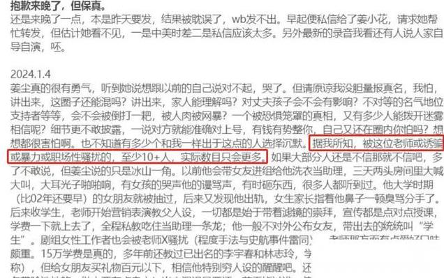 面对剧组的辟谣,姜尘并没有选择沉默,而是继续在网络上发布相关信息,她表示自己所发布的内容都是事实,并质疑剧组的声明,认为剧组是在保护张颂文,故意掩盖真相。