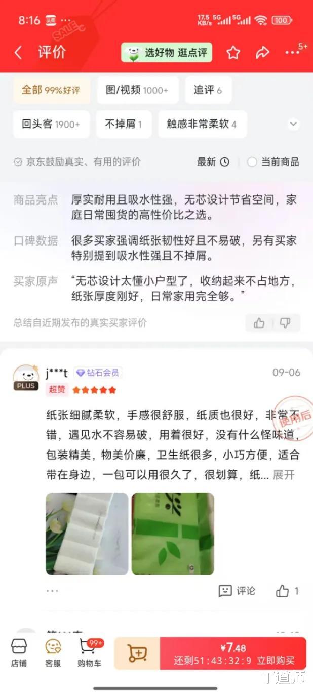 “笨小鸭”采用原生木浆制作,是京东京喜依托下沉市场海量消费趋势,深度洞察用户对生活用纸“高性价比、大规格、强实用性”的需求后,反馈给山西力达纸业,然后定制推出,最终一炮打响。在京东京喜,这款产品的单品半年拥有超过100万+的销量,好评超过99%。