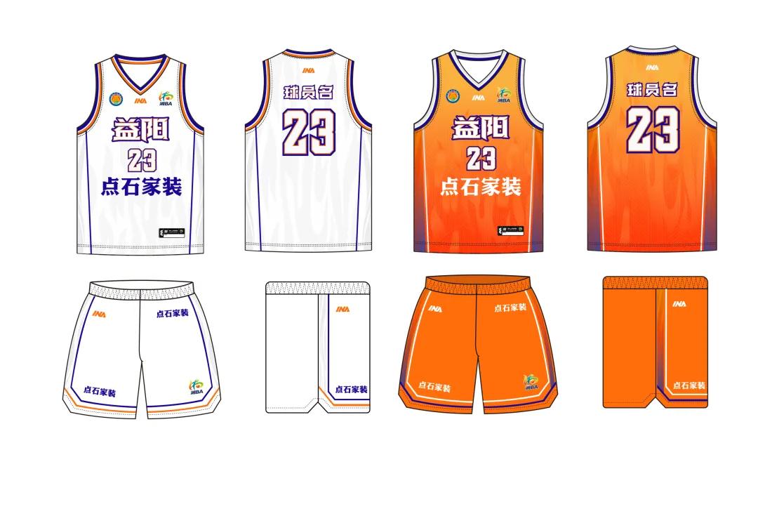 益阳市篮球队队服分深色款和浅色款,正面标益阳二字,右前胸标队徽。