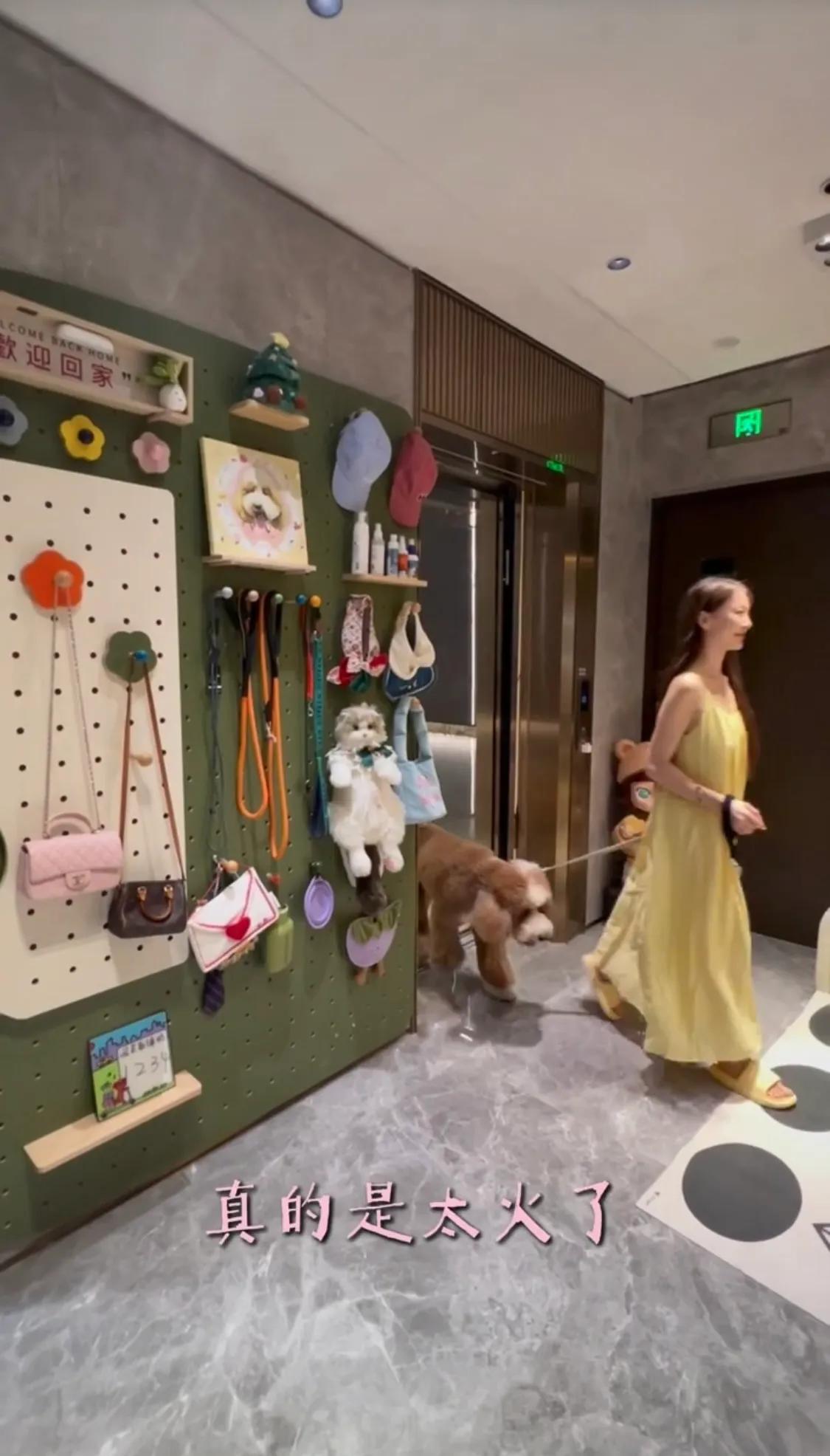 当然,其中最多的还是狗狗用品,每次出门遛完狗,能随手把东西挂在上面,既不占空间,还成了楼道装饰的一部分。