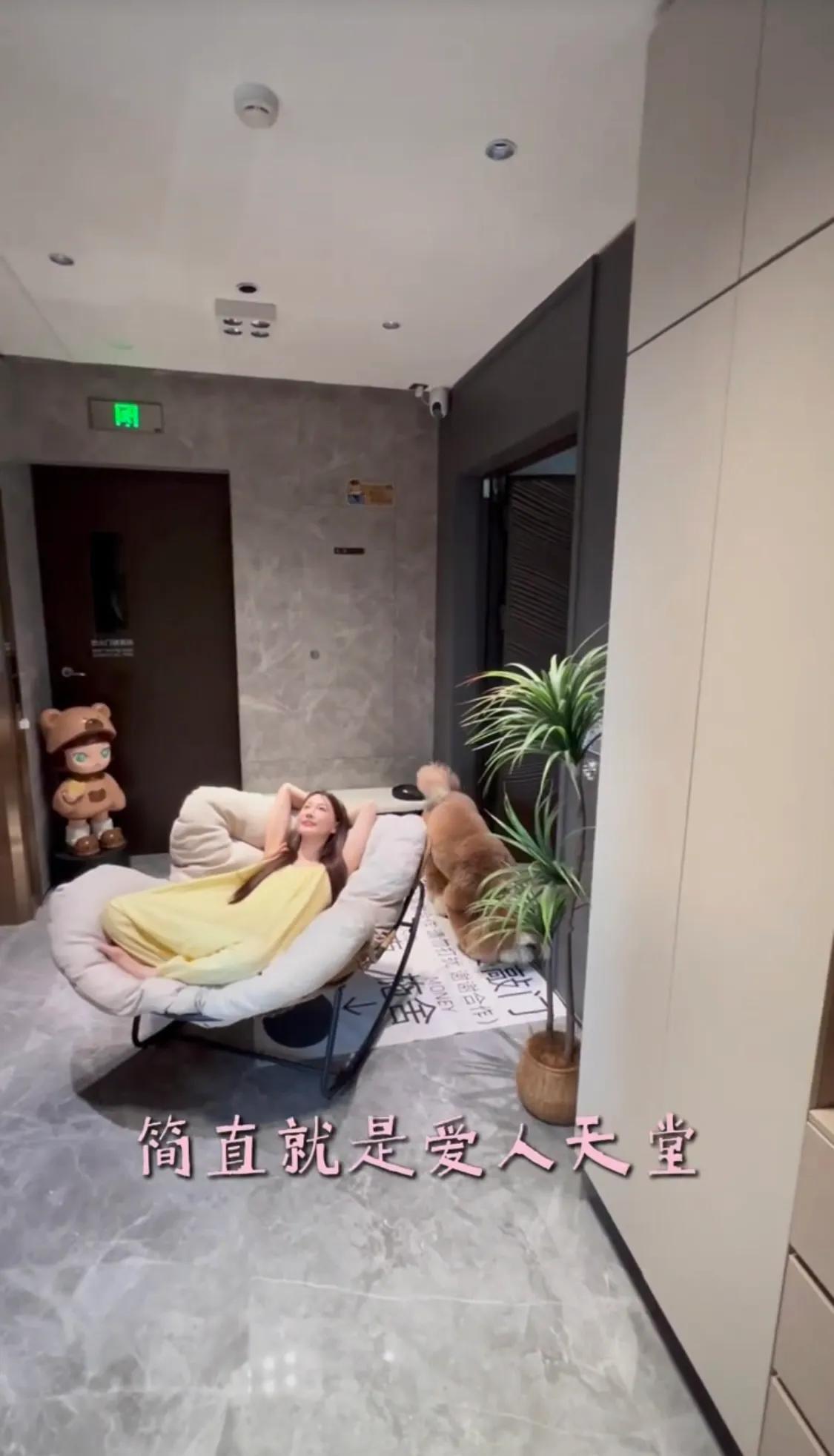 博主@曹千语Anmi,她就是典型的一梯一户,她刷短视频的时候,看到很多人对楼栋改造的帖子,于是她也对这一空间进行布置,发到网上后,想不到一下子爆火了;