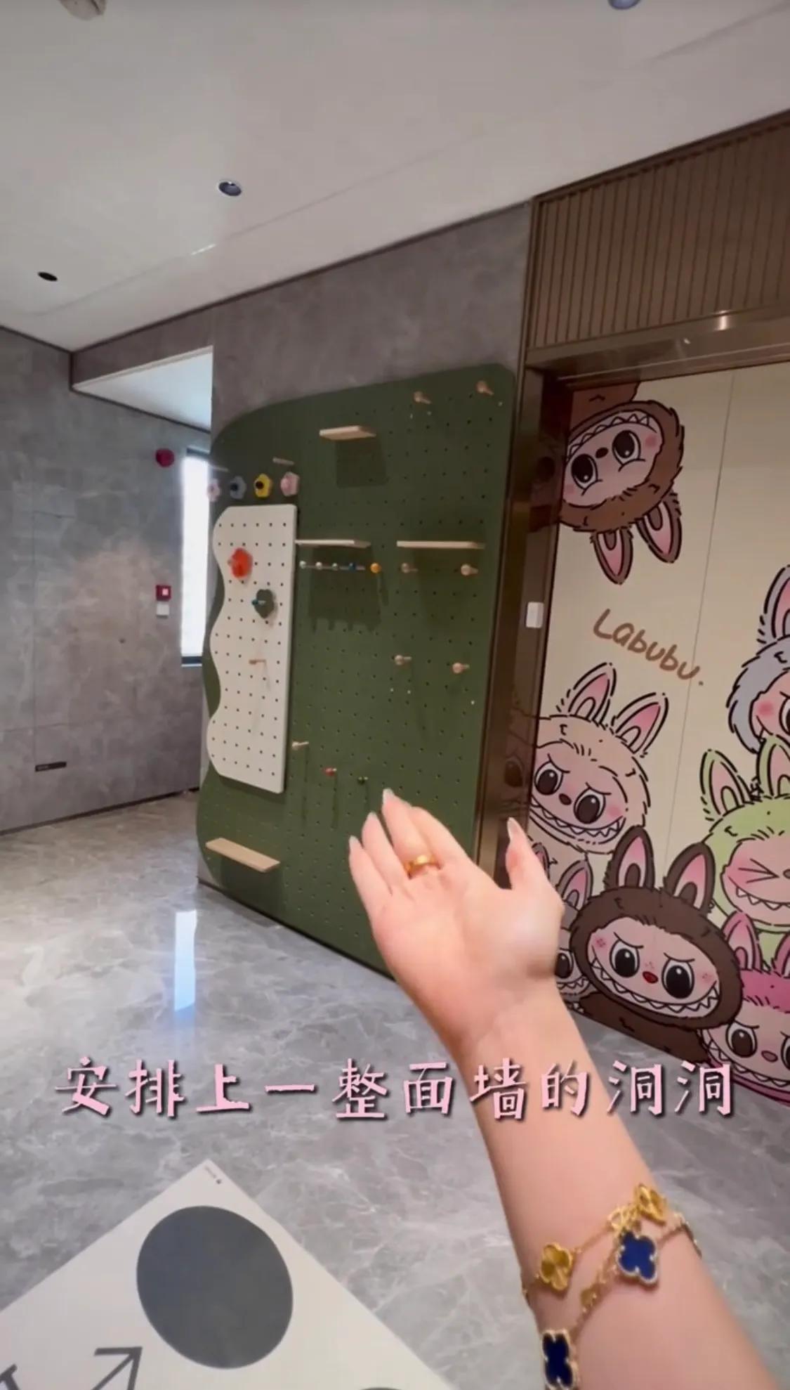 为了让风格统一,博主还在电梯门上贴了自己喜欢的卡通贴纸,旁边还特意搭配了一个卡通公仔摆件,风格高度统一,看起来十分可爱。