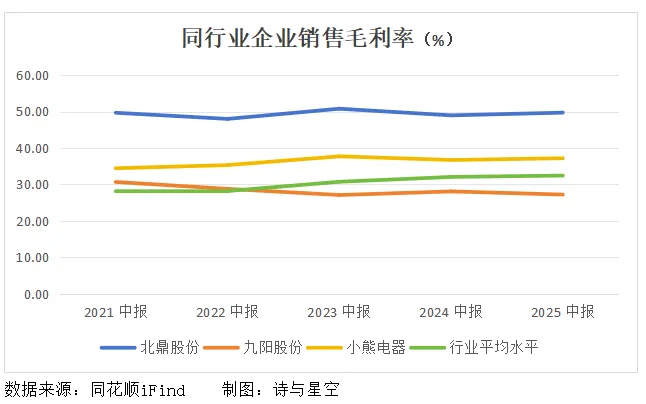 从盈利能力来看,虽然小熊电器在行业内出于中上游,但对比北鼎,还是差了一大截。