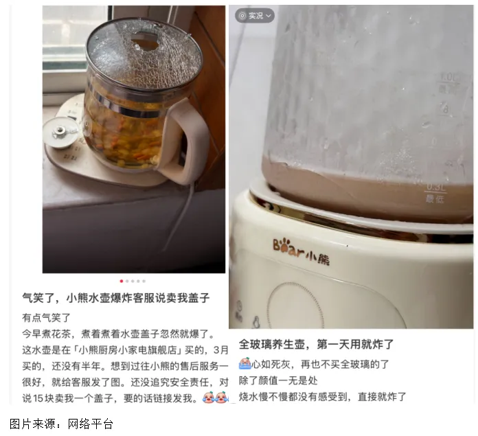 不少吐槽贴和投诉都暴露出玻璃制品的水壶存在质量问题和安全隐患,这些问题均发生于正常加热过程中,而非外力磕碰。