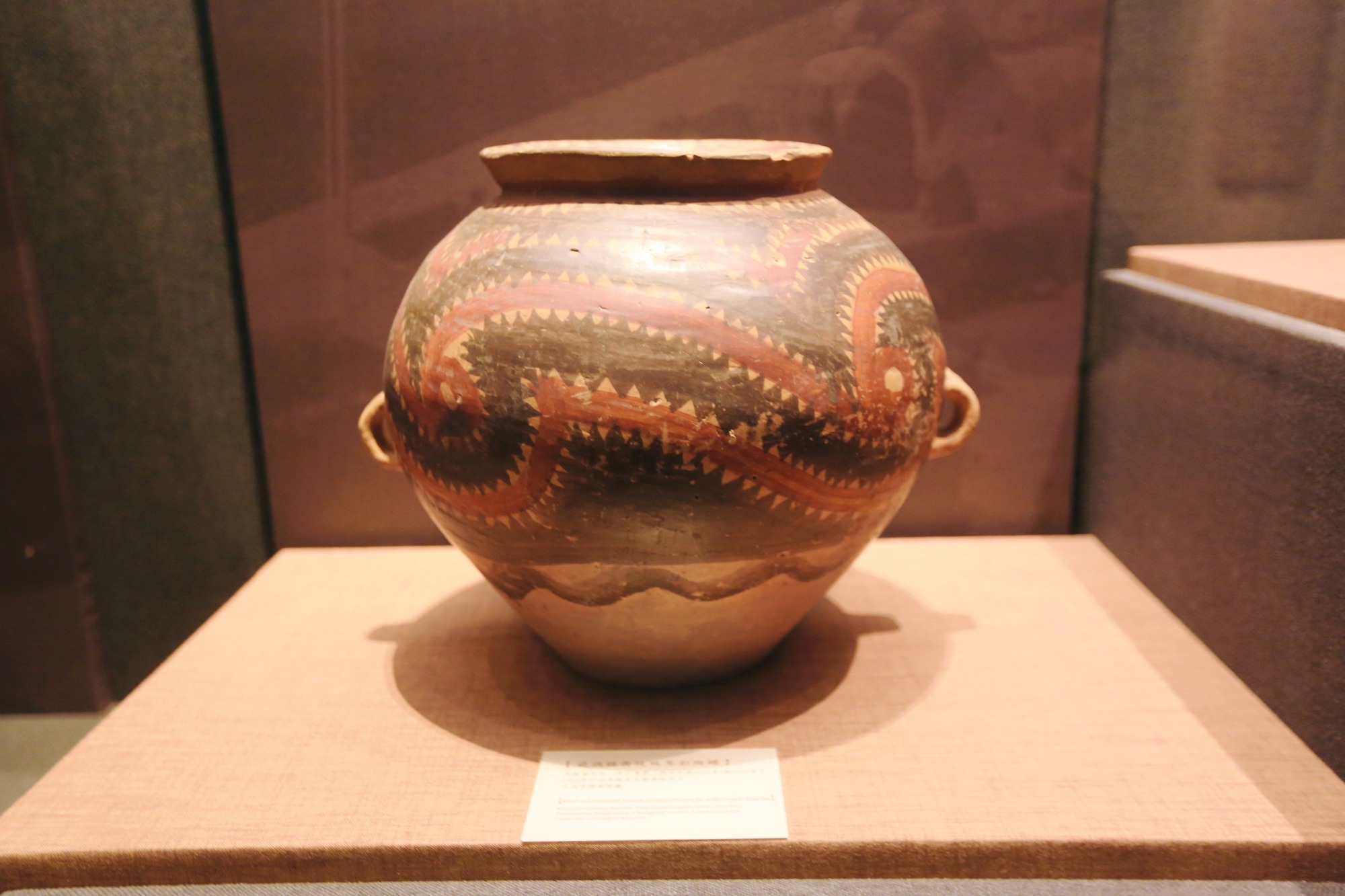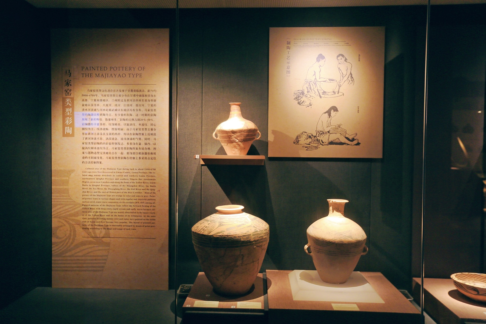 淡黄色的灯光照亮马家窑彩陶上美丽的纹饰,螺旋纹和波浪纹仿佛黄河水般流动,带给人美的享受,早在3000多年前,先民就已经开始了对美的追求。