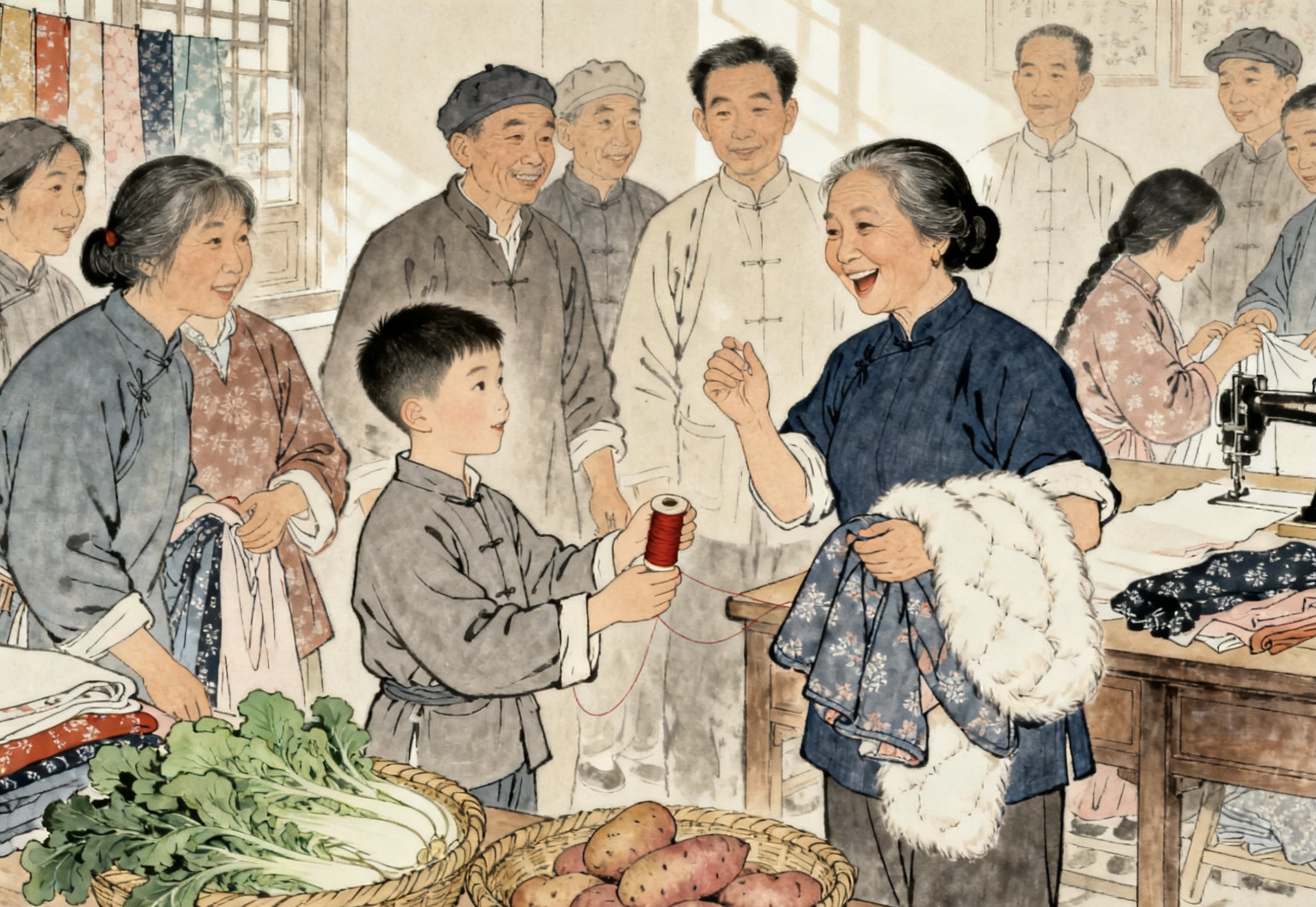 铺子小归小,却总飘着暖烘烘的人气。林阿嫂的手巧,针脚比别家密三分,邻里谁家孩子衣裳短了、老人棉袄破了,找她缝补,她从不推辞,给几个铜板也行,送把青菜、抓把红薯干也成。去年冬天小石头发急烧,夜里没药,是隔壁王大娘顶着寒风跑了三里地,从镇上唯一的药铺里赊来的退烧药。打那以后,林阿嫂总说:“咱这日子,是靠街坊邻里帮衬着过的,能帮一把就帮一把。”
