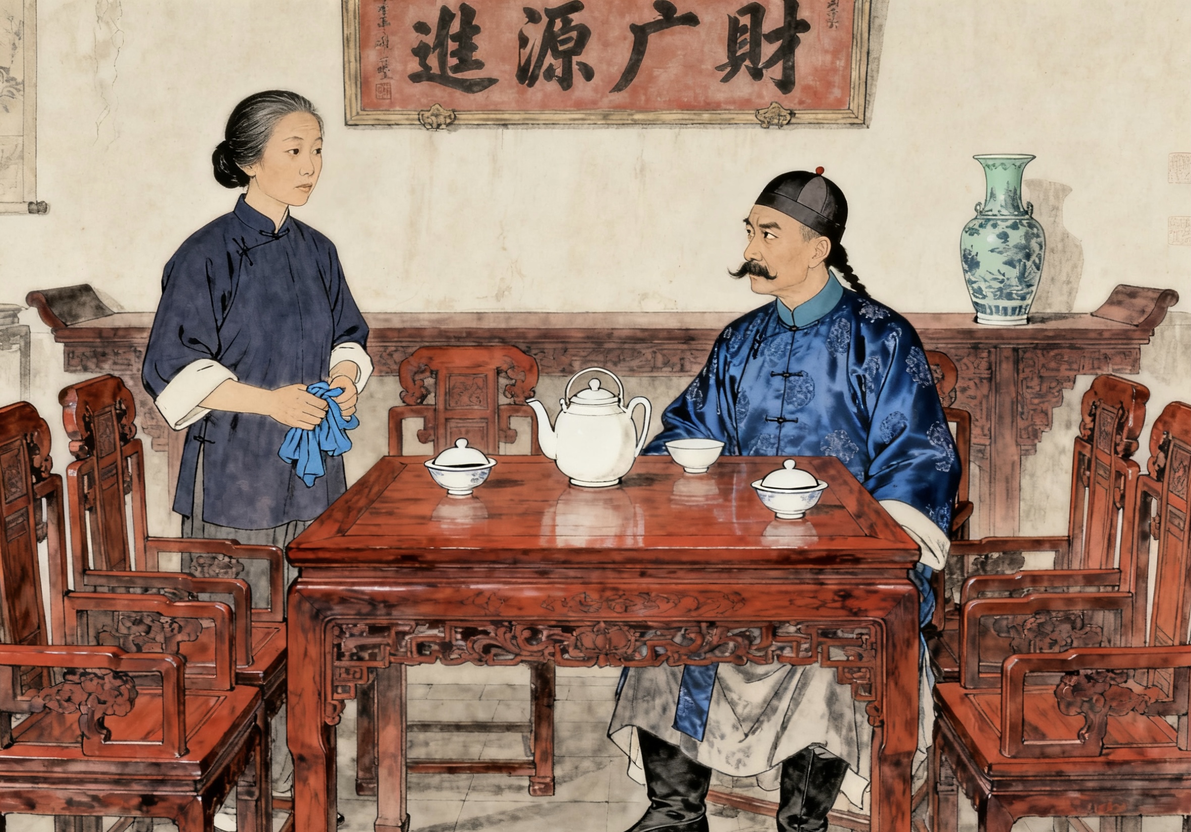 这天傍晚,林阿嫂去给镇西头的李奶奶送缝好的棉袄,路过张盐商的家门口,听见里面传来他跟账房先生的对话:“城里的李财主家的千金,你知道吧?我托人打听了,人家还没许配人家,要是能娶过来,咱这盐铺往后就能卖到城里去!” 账房先生附和着:“老板有眼光,就是李财主爱面子,怕是看不上咱做盐生意的……”