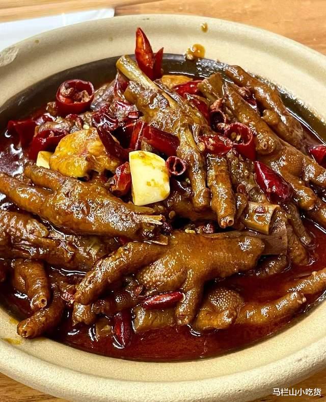 农家土鸡爪:鸡爪被压制的软烂脱骨,直接和西北的辣子,大蒜一起回锅焖,吃起来,香辣入味,满满的胶质肉感。