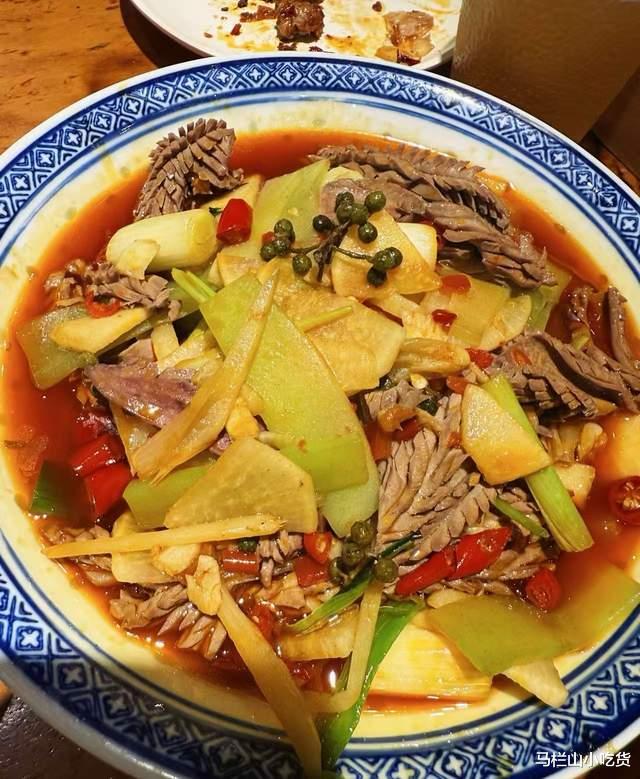 火爆腰花:腰花处理得很好,没有膻味,直接切成凤尾,大火爆炒,青花椒和小米椒调味,腰花麻辣,脆爽都有。