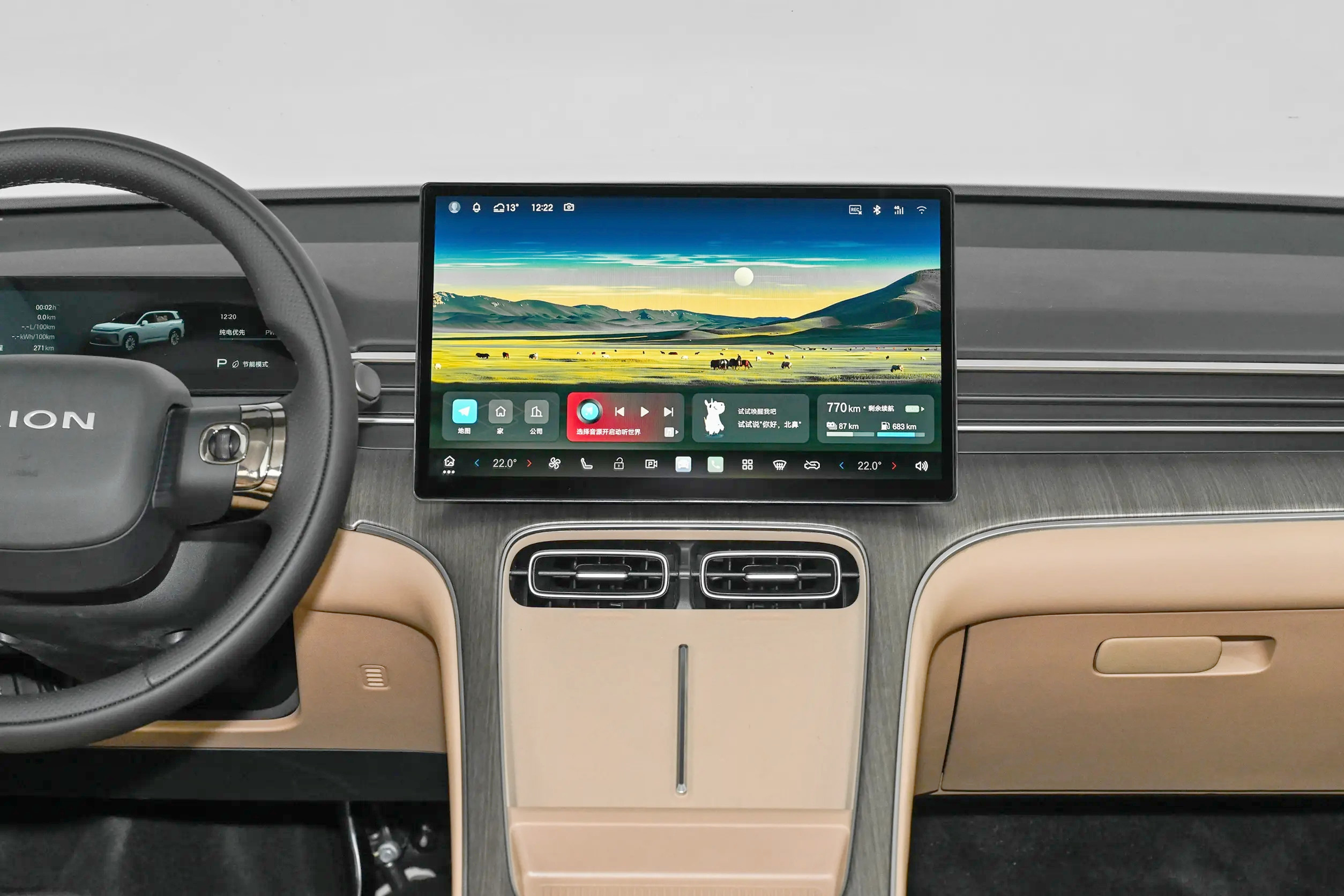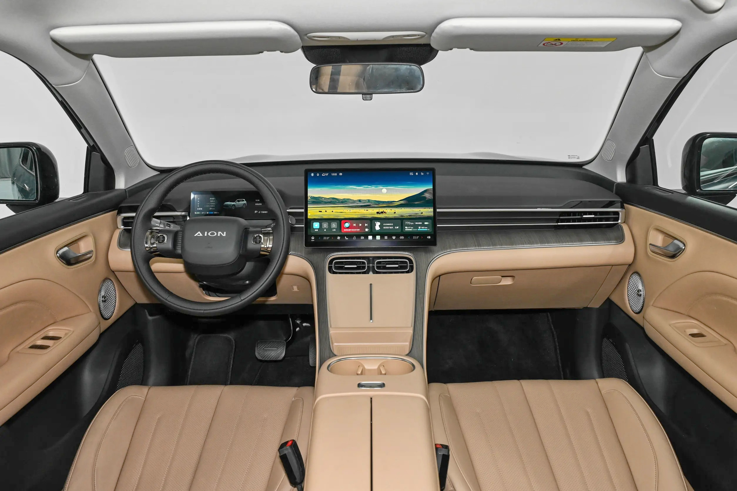 作为一台家用车,内饰设计关键的不是“花里胡哨”的设计,而是“简约且实用”的布局,广汽埃安AION i60 增程版的中控台区域采用了:双幅式方向盘、液晶仪表盘、大尺寸悬浮式中控屏。同时,前中央扶手台区域还布置有手机存放处、储物槽、水杯架等设计。