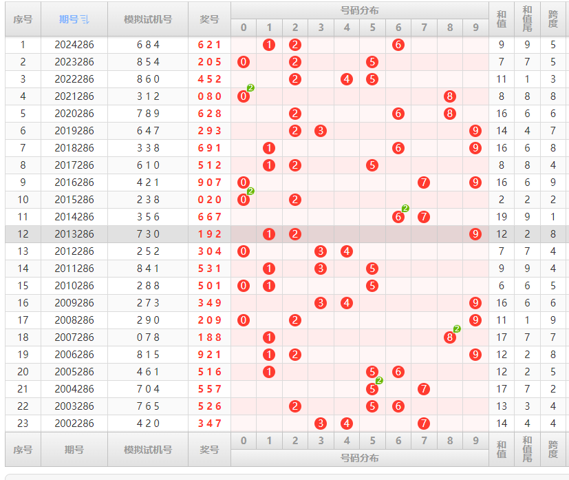 跨度:主攻 4、5、6 这三个中段跨度,走势稳。