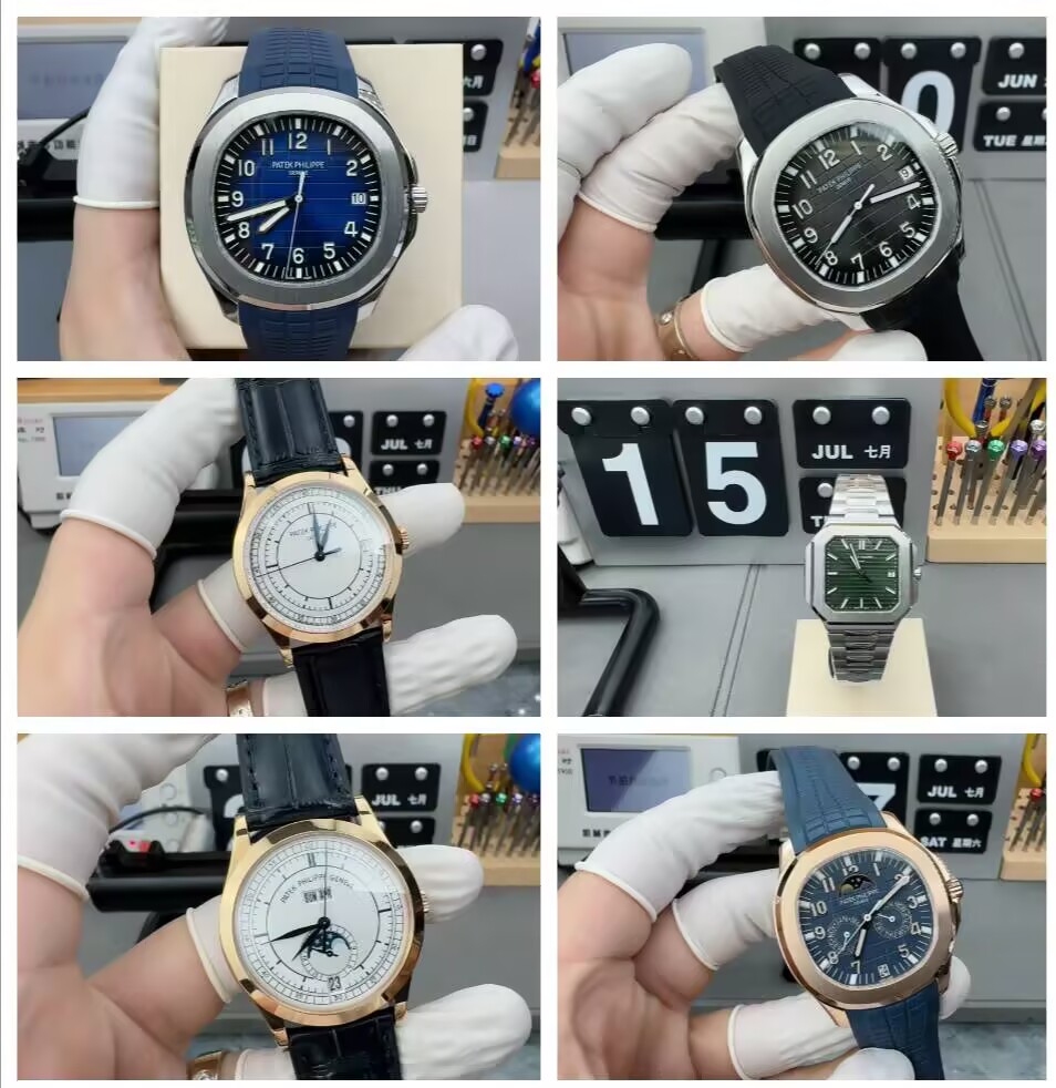 鹦鹉螺的蓝盘被誉为“色差重灾区”。3K厂历经三次改版,终于在2025年推出了终极V3蓝:迎光闪耀电光蓝,侧视呈现深海蓝,配合水平甲板纹与钻石切割刻度,阳光下折射出的光斑与正品相得益彰,堪称色差终结者。
