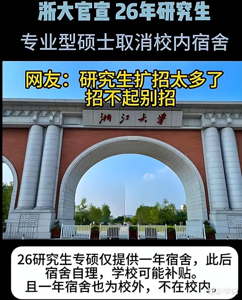 浙江大学坐落在杭州,是top3高校,是研究生升学的热门高校;但是浙大也出公告,不向专硕生提供宿舍了。