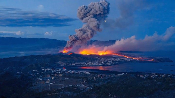 到了晚上7点以后,火山岩浆夹杂着碎屑流,开始冲向山脚下的城市。