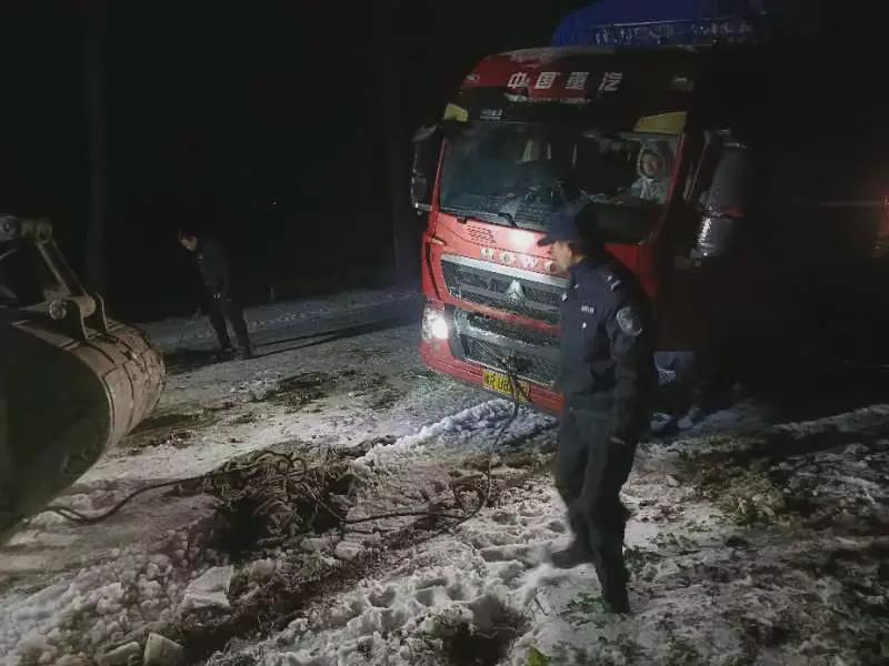 2024年冬季,因天气恶劣突降暴雪,导致三空桥乡道路湿滑结冰,数十辆大型载货车辆因堵车无法启动,群众通过路口张贴的警民联系卡联系到社区民警乔仕强。因警车受冻故障无法驾驶,他便深夜冒着刺骨的寒风步行赶到现场,到达现场后看着堵成长龙的公路乔仕强心急如焚,在尝试铲雪垫沙后仍不能帮货车脱困,他主动联系附近居民用铲车对受困货车进行拖曳作业。他帮着司机挂缆绳、调度车辆,顶着刺骨的寒风一直工作到凌晨三四点,才将现场所有被困车辆全部拖出,现场交通恢复了正常。脱困的货车司激动地说“谢谢你们,如果不是你们,我们还不知道什么时候才能走呢”。