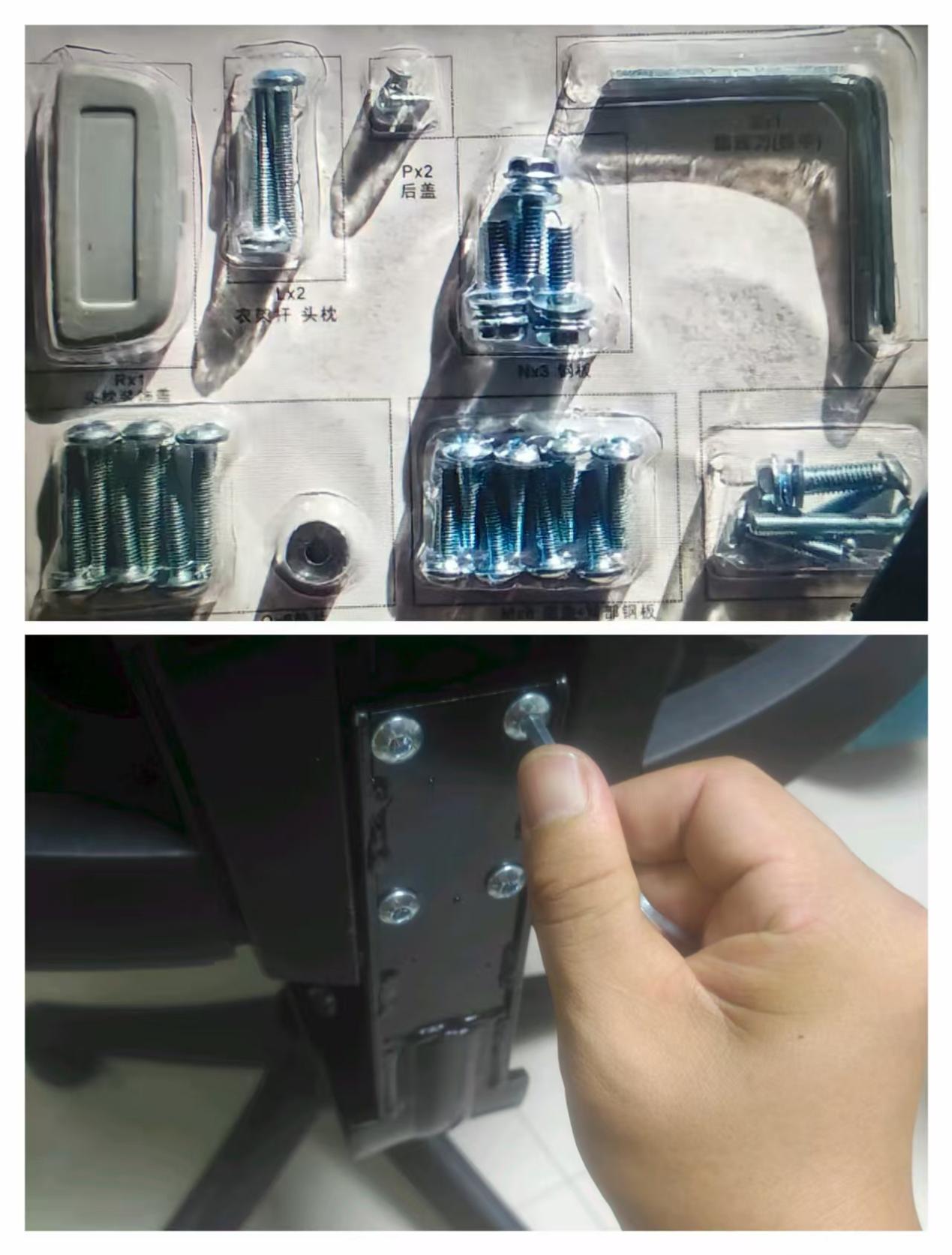 工具情况:螺丝的使用位置标注的非常明确,而且还赠送了备用螺丝,真的是太贴心了。因为网上购买为了方便运输其实就是把几大件分解了,看螺丝的分布就能明白安装很简单,一把扳手轻松拿捏。