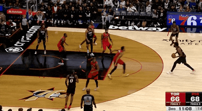 NBA常规赛,76人对阵猛龙的比赛正在进行中。