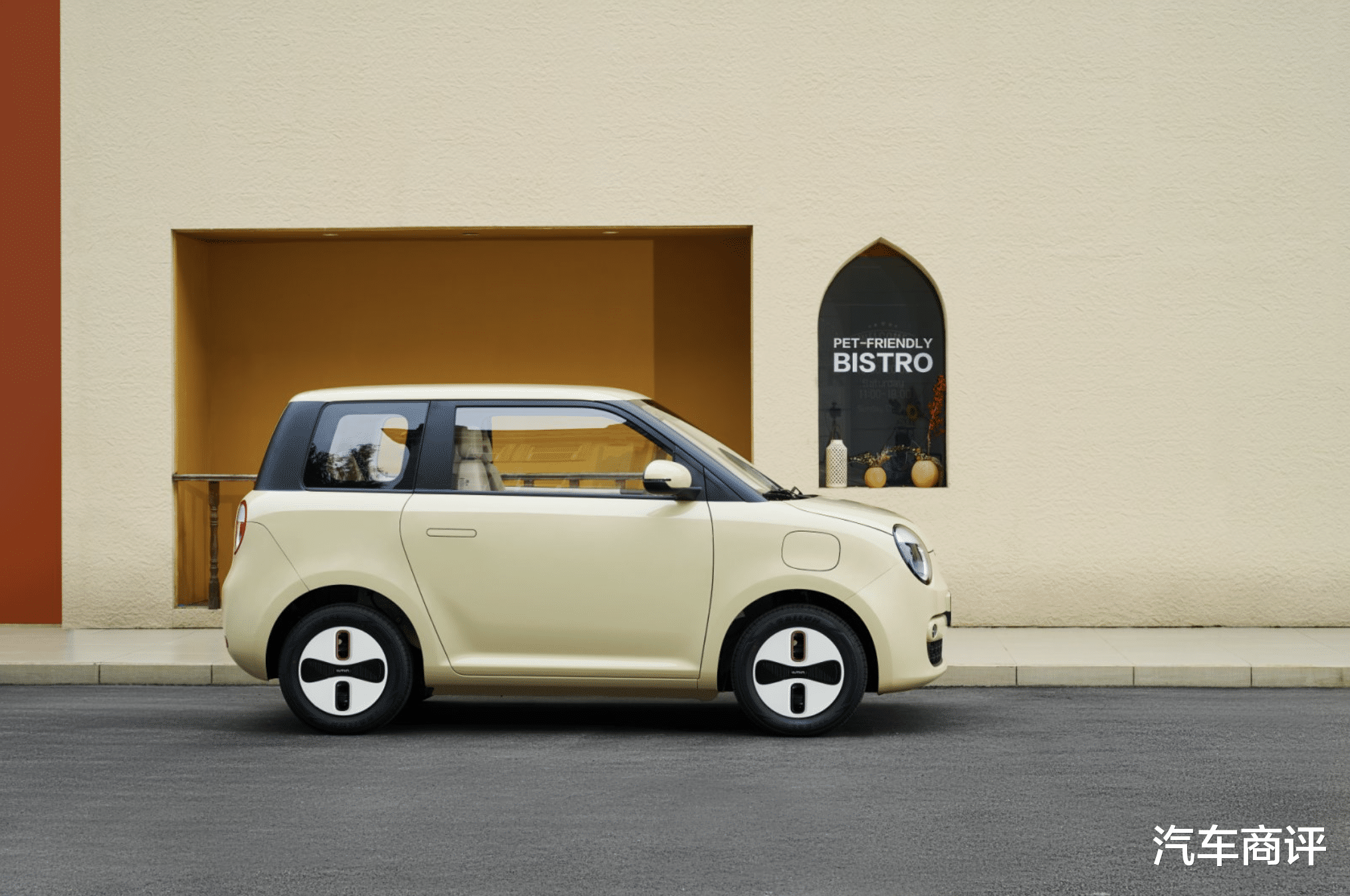 车尾造型圆润饱满,两侧为圆型大灯组,中间为红色点缀,萌萌哒很可爱,也与车头实现了风格上的呼应。