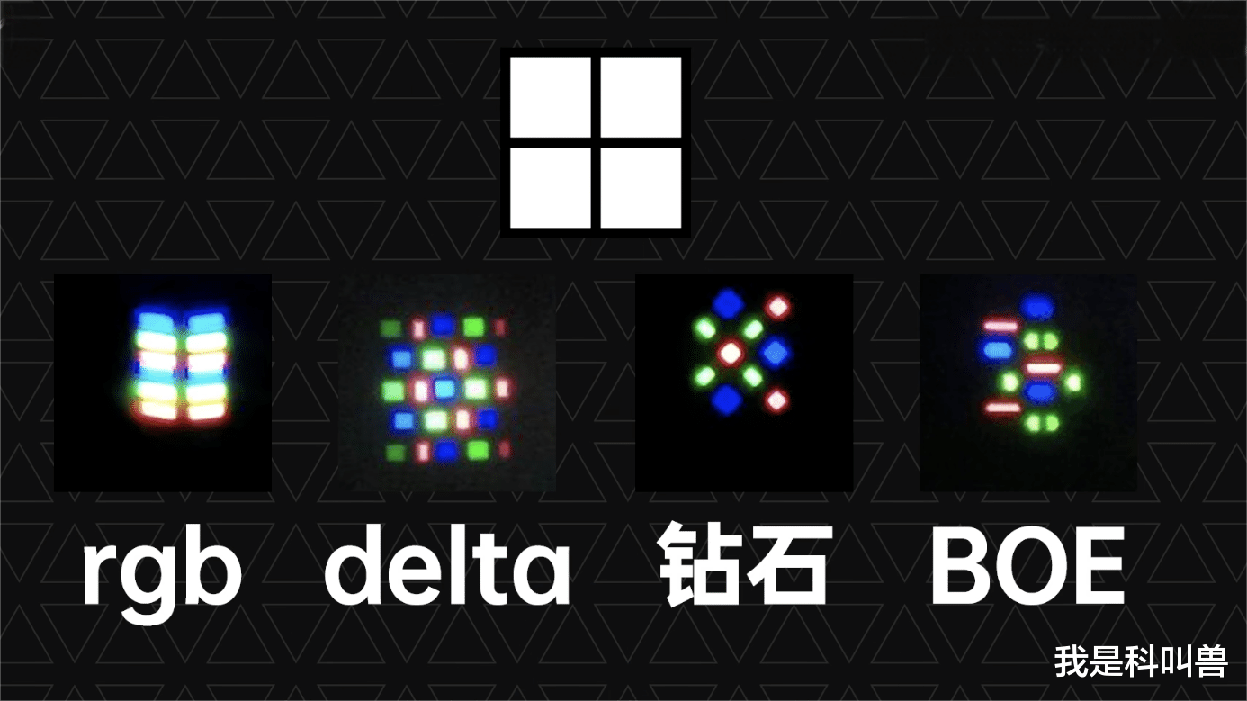 我们知道,屏幕由像素点构成,OLED手机屏幕像素排列主要有:京东方排列、钻石排列、Dart排列、RGB等多种类型,它们的区别在于排列组合形式。